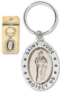 -. Title : Saint St Jude 3 1/4" Zinc Alloy Silver Plate Revolving Dual Tone Key Ring with Prayer