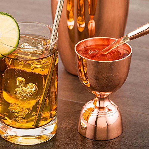 Perfect Cocktails with this Precision Jigger. Made from beautiful copper-plated 18/8 stainless steel, this bell-style two-sided jigger is perfect for professional and at-home mixologists focused on crafting exquisite concoctions. With .5-ounce (15-milliliters), .75-ounce (22-milliliters), and 1.0-ounce (30-milliliters) increment markings etched on one side, and 1.5-ounce (45-milliliters) and 2.0-ounce (60-milliliters) marked on the other side, this must-have bar tool allows for precise measurements needed for the perfect cocktail. Whether mixing a martini or mocktail, a pitcher of margaritas or Manhattans, this jigger will help you measure every last drop. Use at home or at your bar, at catering events or in restaurants - this bar accessory is ideal for all occasions and establishments. Not dishwasher safe. Restaurantware is the kingdom for all your cocktail needs! 0 |