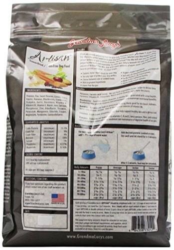 -. Feature : 8lbs bag contains USDA Pre-Mix, Potatoes, Flax, Sweet Potatoes, Carrots, Celery, Apples, Bananas, Blueberries, Cranberries, Pumpkin, Garlic, Vitamins and Minerals / 87% of our ingredients are sourced in the USA with NO ingredients from China / Made in our very own Family Owned and Operated Freeze Drying Facility in Southern California / For each cup of Grandma Lucy's add 1-2 cups of warm water, mix and serve, Ready in 3 minutes