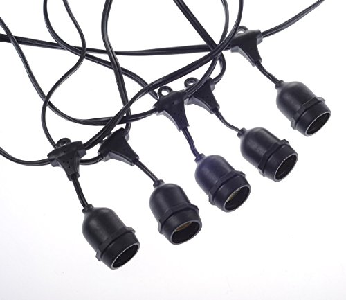 48Foot Outdoor Weatherproof String Lights with 24 Hanging Sockets, Commercial Grade Heavy Duty Light Strand for Patio, Porches, Pergolas, Bistro, Black (Bulbs Not Included)