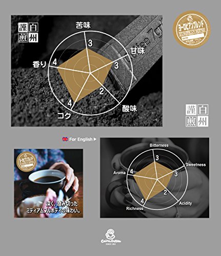 심볶의 브라질 외에 남미곡 생산의 고급두와,양질의 신맛과《고쿠》를 겸해 구비한(갖춘) 케냐를 배합.상쾌하게 느껴져 높고, 매끄러운 쓴맛과 단맛을 든 커피에 마무리했습니다.하쿠슈우 본점의 끽다실에서는,“블렌드 커피”로서 메뉴 업 하고 있는다,「cairn의 맛」.식어도 맛있다,도시적으로 세련된(풍미)맛의 블렌드입니다.