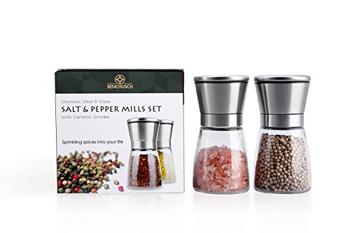 Benchusch Salt & Pepper Mills Set - keep the freshness of your favorite spices, perfect design for your kitchen - make your time in the kitchen easier and more comfortable