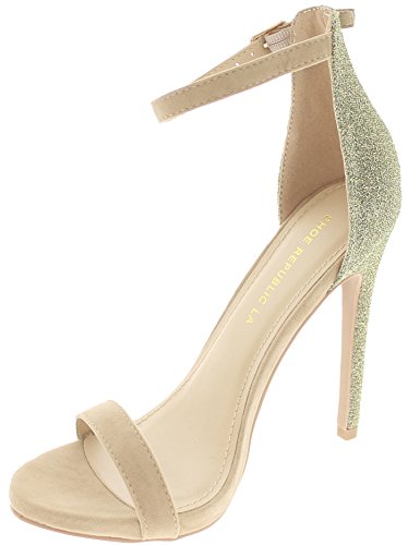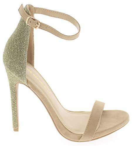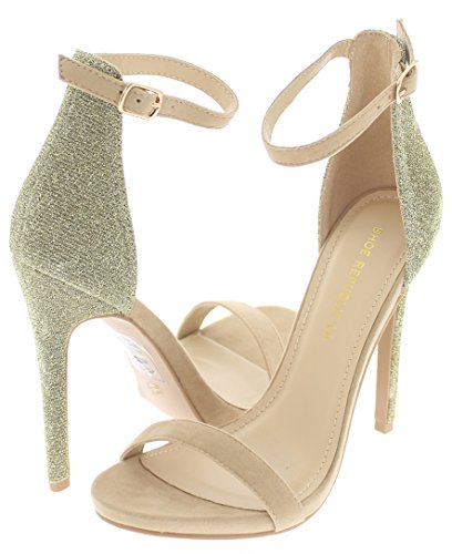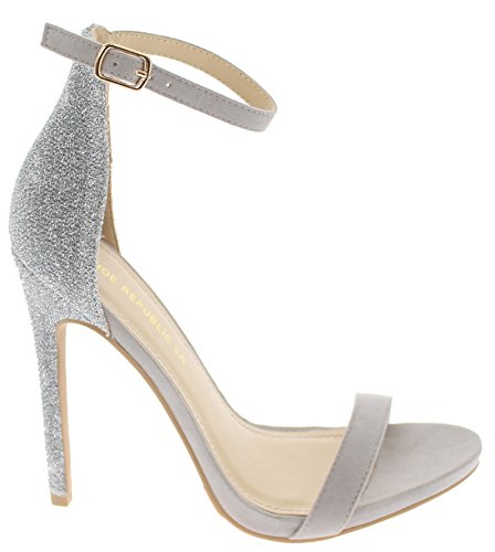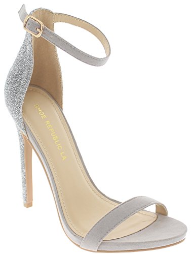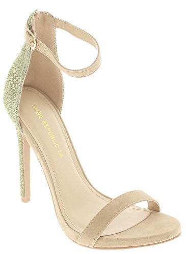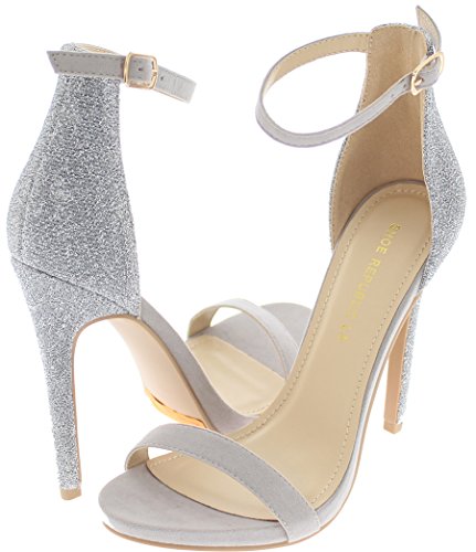 Shoe Republic Glitter Back Open Toe Stiletto Sandal w/Thin Ankle Strap Volca