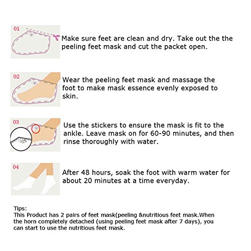 Studio : LUCKYFINE Publisher : LUCKYFINE Binding : Misc. Product Description Efficacy (Peeling Feet Mask): It not only enables our feet skin back to soft and silky, softens rough cuticles to fall accumulating long crusty calluses off ,but also allows feet to easily leave rough and restores baby-tender foot jade. Efficacy (Nutritious Feet Mask): It can moisturize the skin and make feet smooth ,soft and elastic. And the nourishing ingredients,such as rose oil , can keep feet away from dry, rough and other problems. Features: 1. Moisturize the feet skin to soften skin and remove aged cuticle, and leave feet skin supple and exquisite. 2. Improve dry skin and make your feet smooth. 3. Highlight the tender and beautiful feet. Usage: 1. After cleaning and drying feet, open the seal and take out the foot mask. 2. Wear foot mask, massage the outside of the foot mask to let the foot skin evenly contact with foot essence. 3. Paste the sticker seal, remove foot mask and wash with clear water after 60-90 minutes. 4. Wash with warm water after 48 hours, use the product once a day and about 20 minutes each time. Note: 1. This product is a powerful product, use it 2 times per month at most. 2. Please stop using immediately when?any allergy reactions?occur. 3. Do not use the product when there is a wound or redness on the skin. 4. Pregnant and lactating women should not use this product. 5. When the old cuticle and dead skin are exfoliating after use, do not tear with hand to avoid hurting the skin. Storage: Keep away from children, avoid sunlight, store in a cool place. Package Included: 2 pairs of Foot Mask