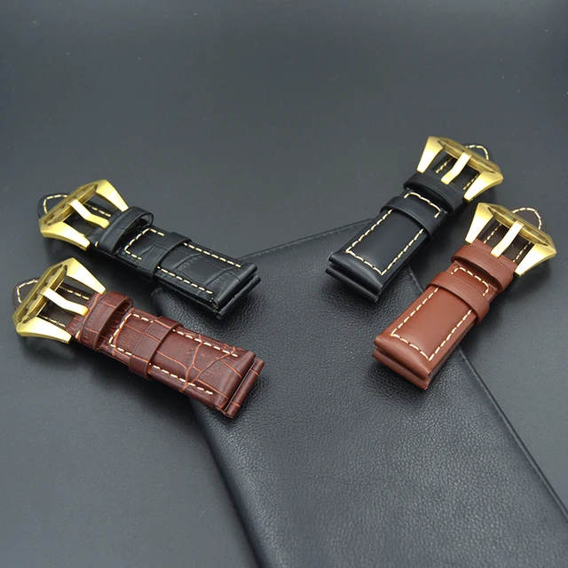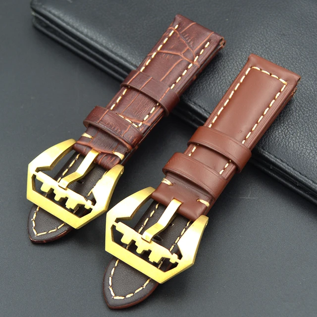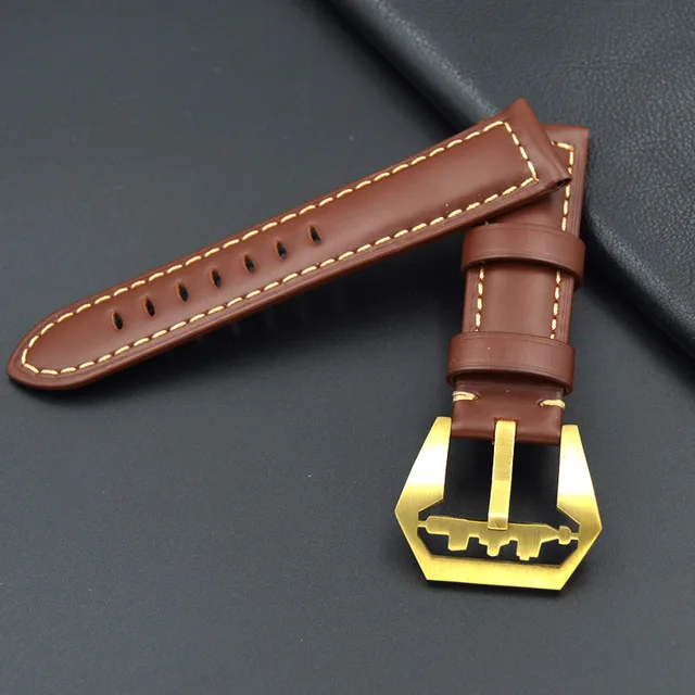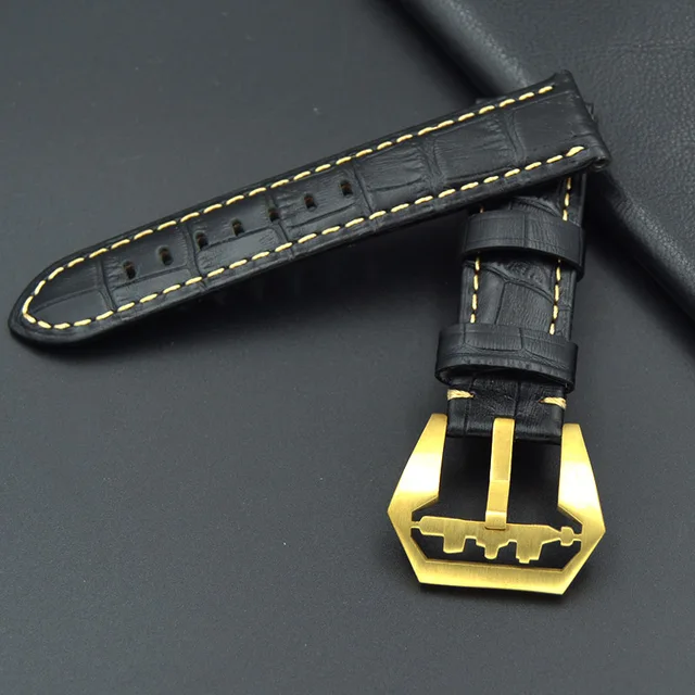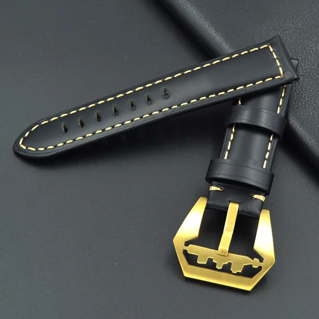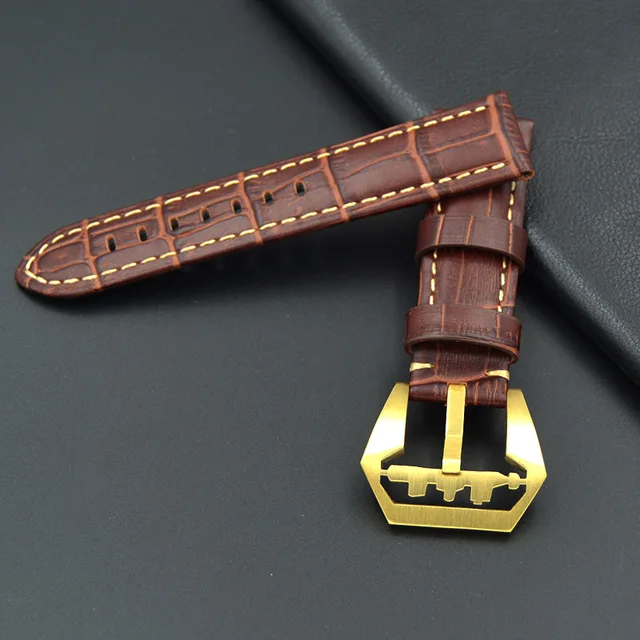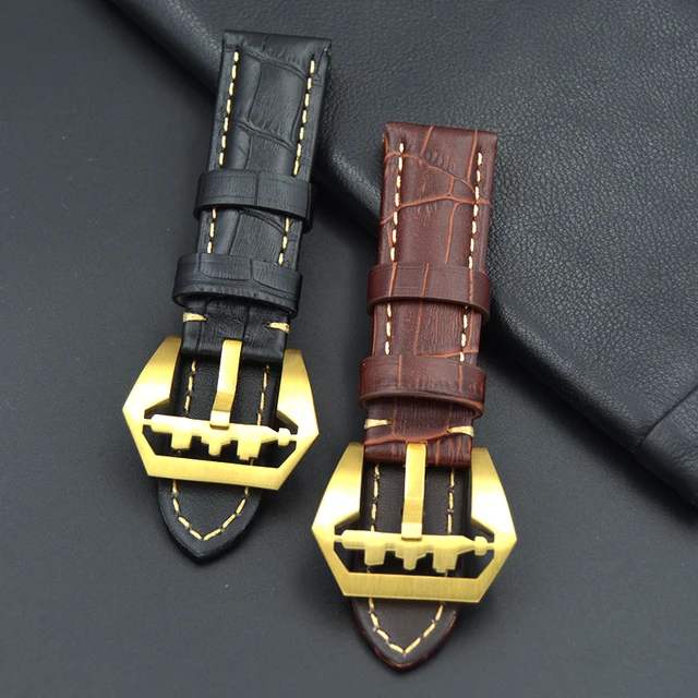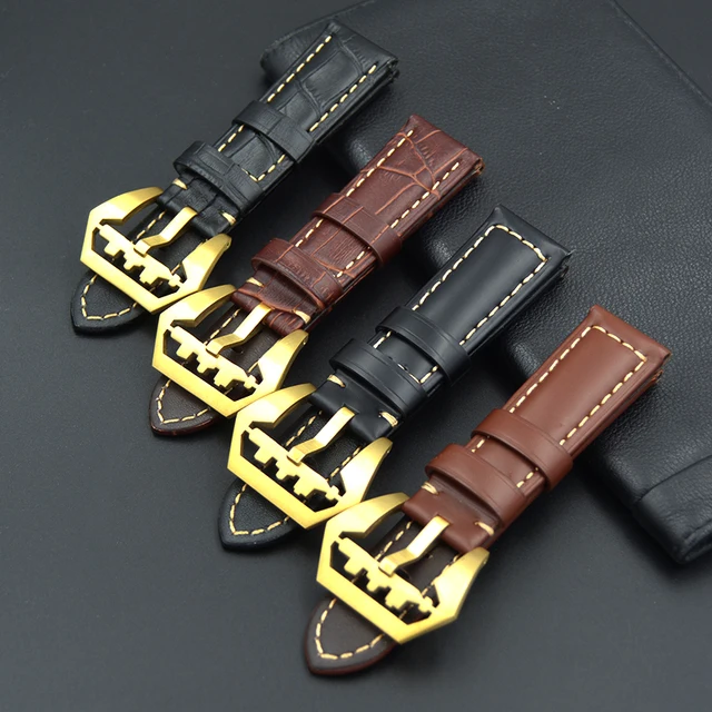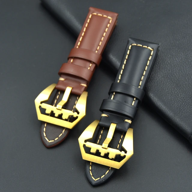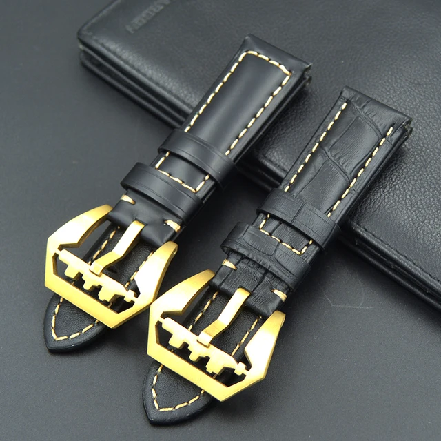 | [해외] 22 미리메터 24 미리메터 시계 스트랩 정품 가죽 시계 밴드 내구성이 좋은 품질 팔찌 블랙 브라운 줄 큰 골드 버클 PAM |