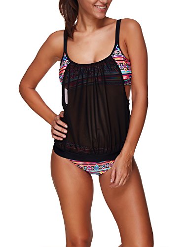 -. Title : Zando Women Athletic Sporty Stripe Tankini with Panty Two Pieces Swimsuit Double Up Push Up Swimwear Bathing Suits