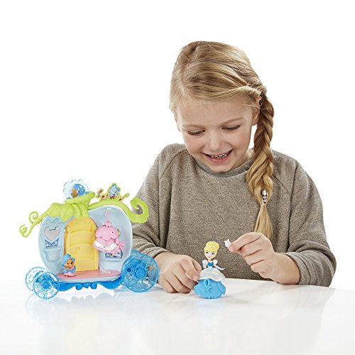 Your little girl can get Cinderella ready for the ball with the Bibbidi Bobbidi Carriage set! Once she dresses Cinderella in her elegant ball gown, your little dreamer can roll her along to the ball in an enchanted carriage inspired by the movie. When the carriage door opens, stairs magically unfold! This set includes a dressing room, a glass slipper, a mouse friend, and an extra outfit for Cinderella. Your little dreamer can keep the fun going by creating Cinderella's outfit and accessorizing her with the included Snap-ins. They can also decorate their Disney Princess with mix-and-match Snap-ins and outfits (sold separately) and can build their own Little Kingdom! Copyright Disney Hasbro and all related terms are trademarks of Hasbro.Feature