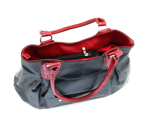 -. Feature : Silver tone studs and rings / Inner zipper and two open pockets / Licensed Betty Boop Large Tote / Double shoulder straps / Approximate Size: 16"L x 9.5"H x 4"W