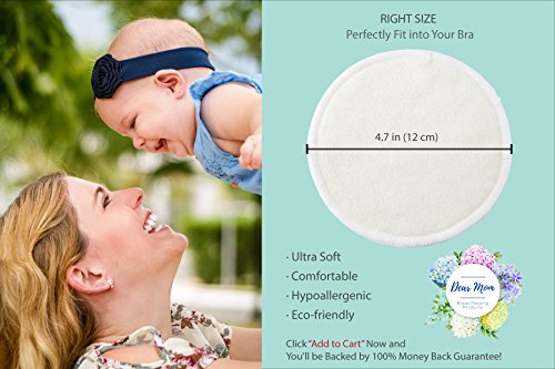 -. Feature : SOFT, COMFORTABLE - Made of hypoallergenic organic bamboo material, our nursing pads are ultra-soft in high quality. The breathable bamboo lining feels very comfortable inside your bra and soothes sensitive breast skin and sore nipples. The pad is just the right size: 4.7 in (12 cm) in diameter, meaning it can fit under your bra perfectly while it doesn't show. / ABSORBENT, LEAK PROTECTION - Our 4-layer-designed breastfeeding pads are super absorbent due to their 2 inner microfiber layers that soak up excess milk. The outer layer is waterproof for leak protection, keeping your clothes or bra dry. No more embarrassing surP.R.Ises! / WASHABLE, REUSABLE - Unlike disposable breastfeeding pads, our nursing bra protection pads can be washed and reused many times, meaning you can save money. You can simply put these durable pads in your laundry bag and then in your washing machine. / PERFECT FOR GIFT & TRAVEL - Our reusable nursing pads set includes a Carry Pouch and a Laundry Bag for Free, making itself a perfect baby gift set for newborn. You can always carry enough extra pads in your wet bag so that you can use new ones wherever you go and whenever you want. The protective carry pouch is waterproof in a modern design to protect your pads from getting wet. / 100% MONEY BACK GUARANTEE - We, Dear Mom, have created the best nursing pads in the market, which is why our product comes with 30-day money back guarantee. We are fully committed to excellent customer service. Click "Add to Cart" now to claim the best quality nursing pads!