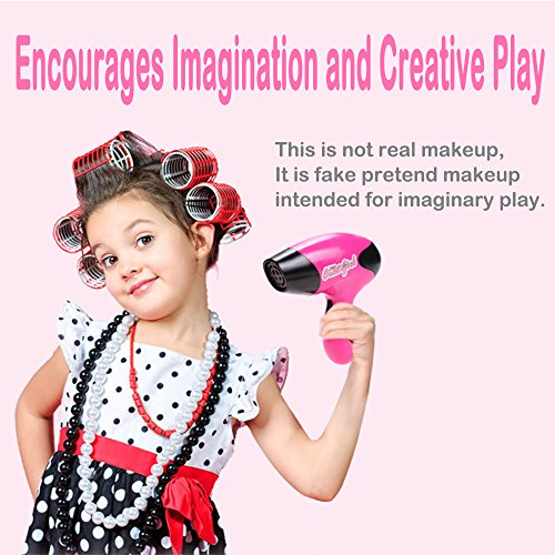 Pretend play: cute & realistic hairdryer and cosmetic kit, make your kids enjoy the fun of role play for hours with their little partners.