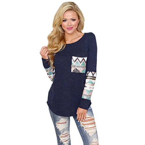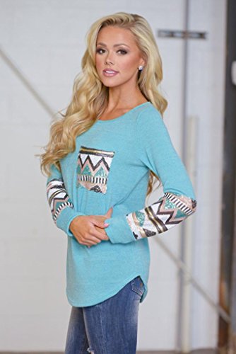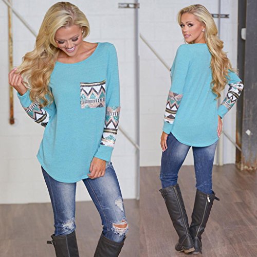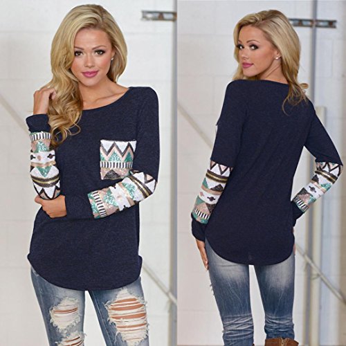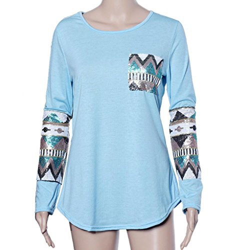 -. Title : Usstore Women Ladies Pocket Sequins Splice Long Sleeve Tops T-Shirt Blouse