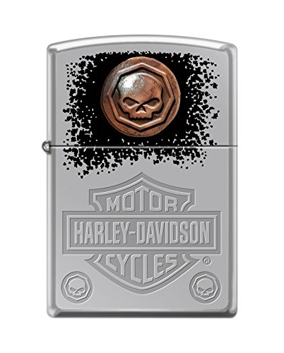 Studio : Zippo - High Prep (Custom SKUs) Publisher : Zippo - High Prep (Custom SKUs) Binding : Sports Product Description This Harley-Davidson design combines color imaging with Luster Etch to create an interesting contrast and a stunning product. This high polish chrome lighter features the Harley-Davidson bar Shield logo and skulls on this lighter. Comes packaged in an environmentally friendly gift box. For optimal performance, fill with Zippo premium lighter fluid. 0
