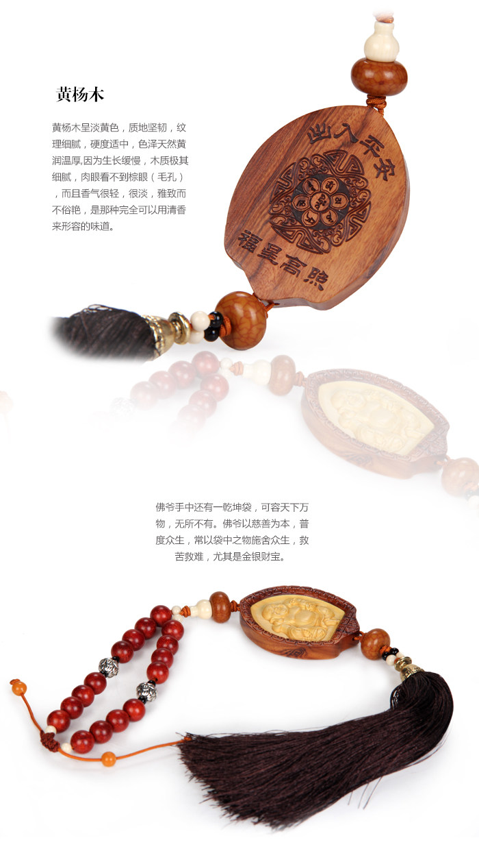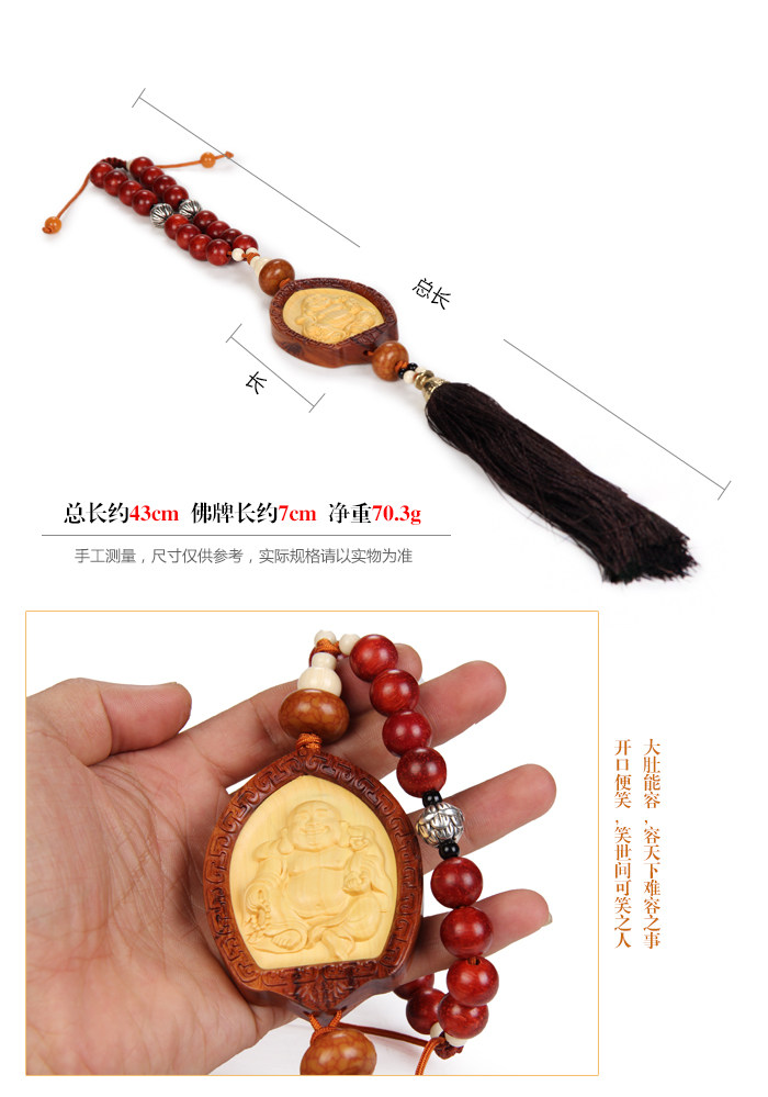 Product features: This car?hanging?use?boxwood?system?and?face,?delicate and beautiful in appearance,?internal?rosewood?carved?Buddha?is?fine,?but?good?eyes,smile. Product?introduction: Name:?the best?fo?the car Material:?yellow?poplar Dimensions:?length of?about?43cm?long 7cm*?thick 1cm?Amulet Weight: about?70.3g?(net) Packaging:?packaging?mascot |