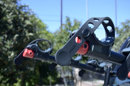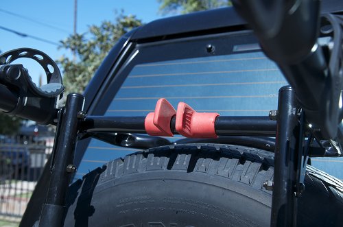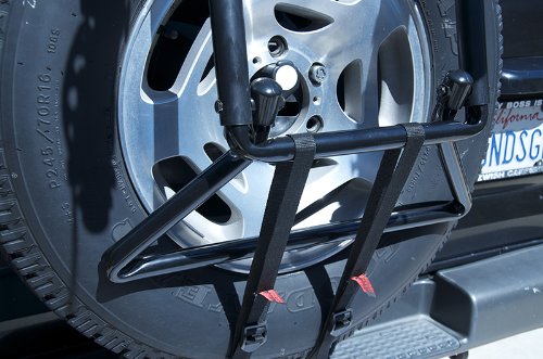 - Feature : Patent pending design fits wide range of externally mounted spare tires - consult manufacturer web site for specific vehicle fit information / Patented quick snap set-up design allow for super-quick set up right out of the box / 16" Long Carry Arms easily accommodate up to 3 bicycles (100 LB Max capacity) / Individual Dual-Compound tie-down cradles secure and protect bicycles / Patented Sure Strap bottom straps help keep your rack securely in place on your rear mounted spare tire