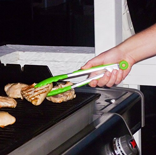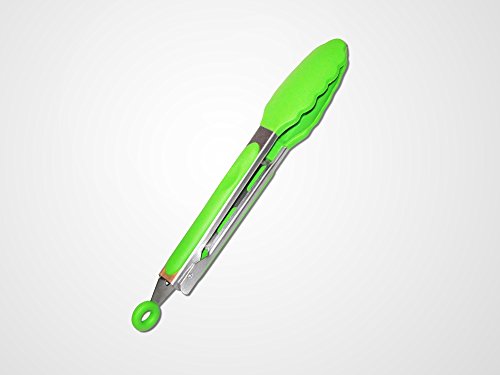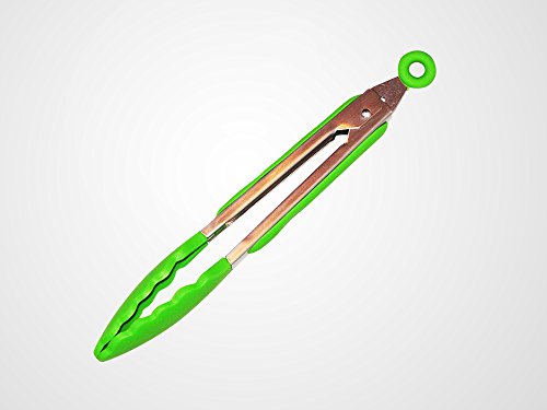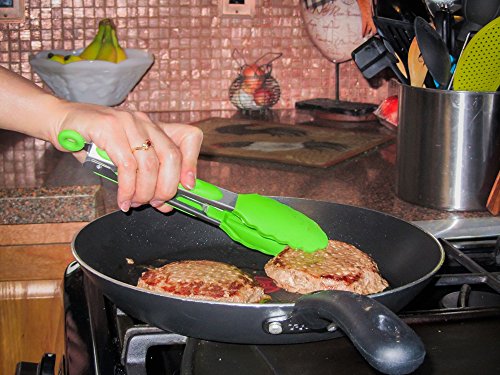 Silicone Cooking Tongs Stainless Steel Locking Kitchen Utensils 9 Inch (Green)