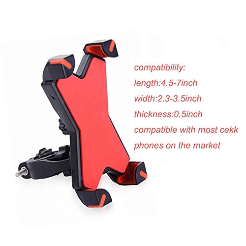 Bike Phone Mount Bicycle Holder and Motorcycle Holder, Fits for GPS Devices, iPhone 6s / 6s Plus, iPhone 7 / 7 Plus, Samsung Galaxy S7,360 Degrees Rotatable,Adjustable Sizes.(Red)