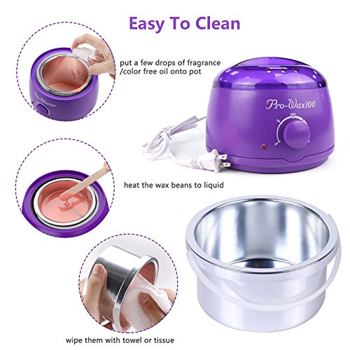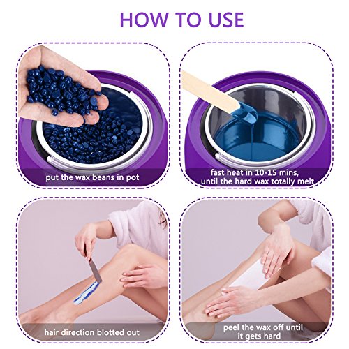 HOW TO USE: 1.Cleansing Face, Exfoliating. 2.Apply moisturizing essential oil to the skin. 3.Just plug in and rotate the knob to adjust temperature, the pilot lamp lights up and the heater starts working.Take appropriate amount of wax beans into adepilatory wax heater to melt. 4.Heat the wax to a melting temperature,after the wax melted,spread a layer of wax with aspatula on the skin along the direction of the hair growth. 5.After 15-20 minutes, feel the wax temperature disappears when the wax stripped,against the direction of the hair growth quickly ,coated with skin cream.