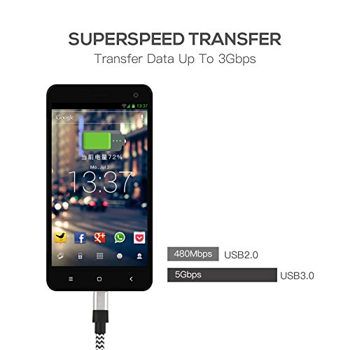 2-Pack 5ft USB 3.0 Type C Cable: Super fast charging and Super fast transmission (up to max 5Gbps),conforming to the USB Type C Specification version 1.1, 56kilohm, standard identification, which ensures a safe charging at 4.0A Maximum and the speed of data sync up to 5 Gbps.