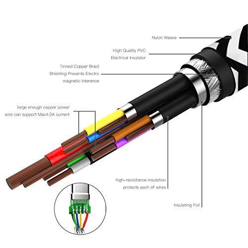 Ultra-Durable:Premium design with braided nylon exterior and toughened fiber core. The nylon fiber cloth is wound tightly around the cord lending it superior durability and adding a bit to its flexibility. With 6000+ bend lifespan.