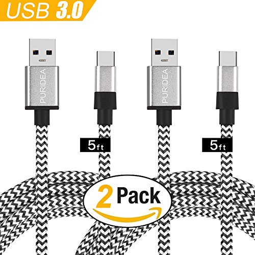 Puridea (2 pack) USB C to USB 3.0 Nylon Braided Cable,Quick Charging (Max 4.0A) Type C 3.0 to Type A 3.0 Cord for Samsung Galaxy S8, S8+, New MacBook, Google Pixel, Nexus 6P (5Ft x 2)