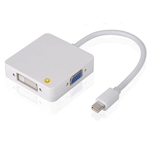 -. Title : 3 in 1 Mini DisplayPort DP / Thunderbolt to HDMI DVI VGA Cable Adapter Converter Superior Performance for MacBook Pro, MacBook Air, iMac, MS Surface Pro (White)