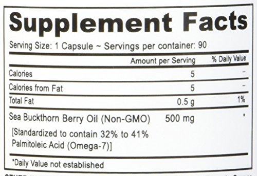 -. Binding : Health and Beauty -. Brand : Deva Nutrition -. EAN : 0817796029371 -. Feature : Deva Sea Buckthorn Oil is cold-pressed, unrefined and it comes in vegan capsules that are made from plant cellulose instead of the commonly used gelatin. / Deva uses the valuable berry oil only and do not dilute our oil with the added seed oil. / Palmitoleic acid is a conditional fatty acid (Omega-7) that is commonly found attached to glycerides in fat tissue and although it is found in all cells it is abundant in liver tissue. -. IsAdultProduct : 0 -. Label : Deva Nutrition -. LegalDisclaimer : NO SALES TAX -. Manufacturer : Deva Nutrition -. NumberOfItems : 1 -. PackageQuantity : 1 -. ProductGroup : Health and Beauty -. ProductTypeName : HEALTH_PERSONAL_CARE -. PublicationDate : 2017-03-08 -. Publisher : Deva Nutrition -. ReleaseDate : 2017-03-08 -. Studio : Deva Nutrition -. Title : Deva Nutrition Sea-Buckthorn Oil 500 Mg Vcap, 90 Count -. UPC : 817796029371