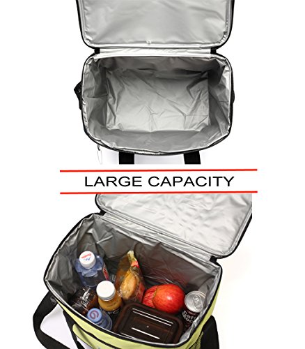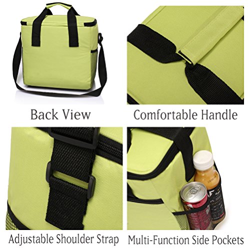 Vaschy Lightweight Waterproof Insulated Lunch Bag For Work, Men, Women ,Front Pocket and Two Side Pockets (Green)