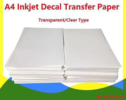20 Sheets DIY A4 Inkjet Water Slide Decal Transfer Paper Sheets Transparent Clear for Inkjet Printer