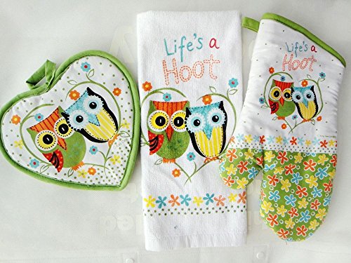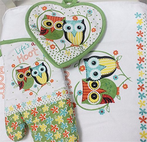 3pcs/set cotton oven mitt beautiful owl printing Insulation baking gloves towel mat set home textile kitchen supply