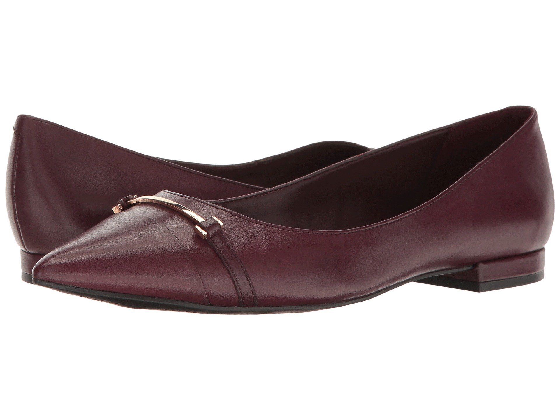| Product Information SKU: #8919807Strut your look in the office with the Rayanne flat.Leather upper.Slip-on construction.Detailed hardware at vamp.Pointed toe.Synthetic lining.Soft leather footbed.Rubber outsole.Imported.Product measurements were taken using size 40 (US Women's 9), width B - Medium. Please note that measurements may vary by size.Weight of footwear is based on a single item, not a pair.Measurements: Heel Height: 1?2 in Weight: 7 oz |