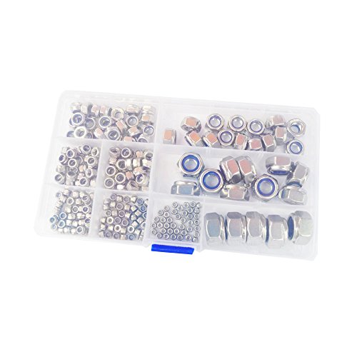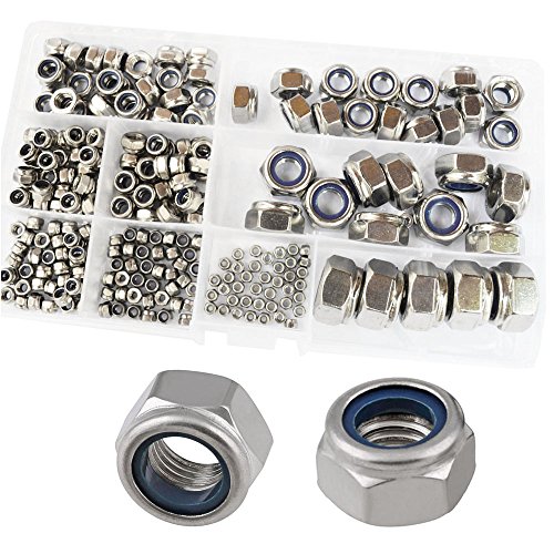 Nylon Lock Nuts M2 M2.5 M3 M4 M5 M6 M8 M10 M12 Metric Assortment Kit 240Pcs,304 Stainless Steel