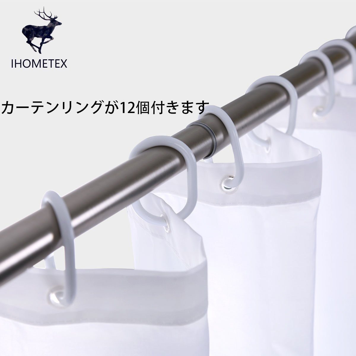 Shower curtain × 1 piece size: about 180 × 200 cm and curtain ring × 12 fitting diameter: 27 mm