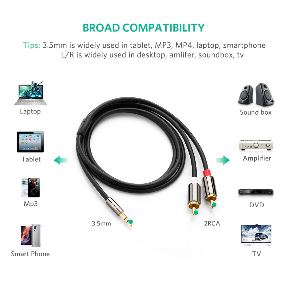 UGREEN 10584 3.5mm stereo mini plug to 2RCA (red · white) conversion stereo audio cable 2m × 1