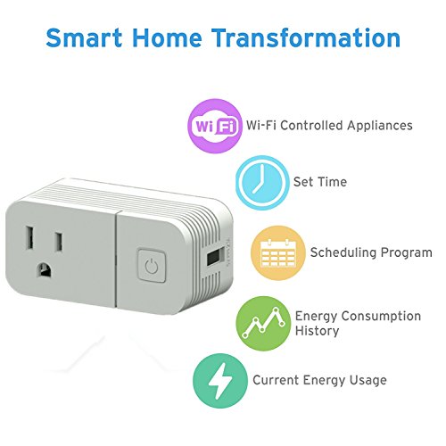 Wifi Smart Plug works with Amazon Alexa/Google Home, mini Smart Outlet with extra USB port,remote control with free app, no hub required,smart switch/socket, timing, power consumption, energy monitor