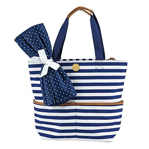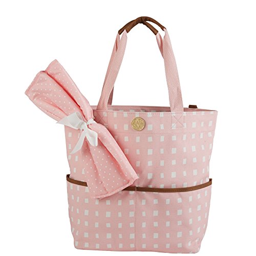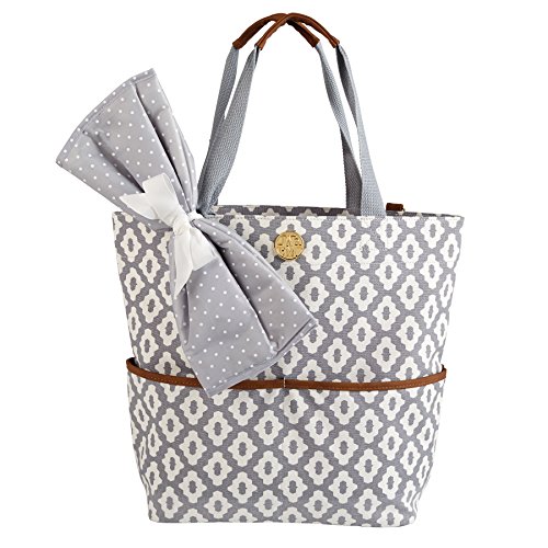 2-piece set. Treated cotton canvas, on-the-go diaper tote features 4 roomy exterior pockets, interior zip-secure pocket, over-the-shoulder handles and key-finder clip. Comes with coordinating, wipe-clean nylon changing pad. Canvas is treated with stain-resistant, water-resistant.Feature