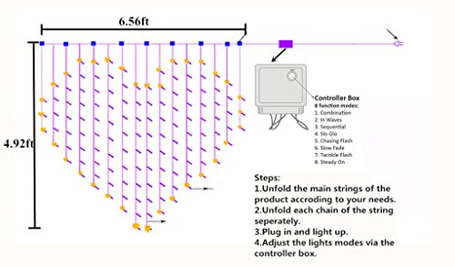 - SIZE: 6.6ftx5ft/2mx1.5m, 128LEDs, Total 16 Strings, Warm White Color