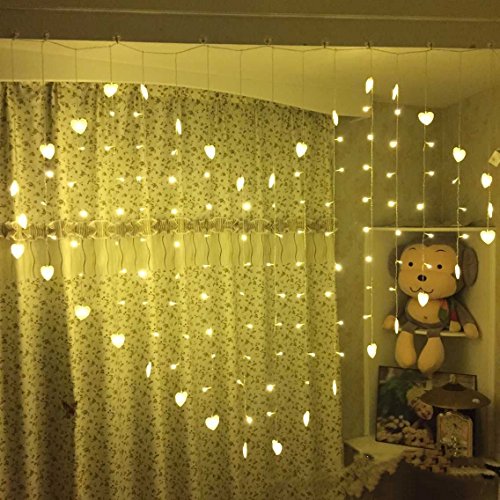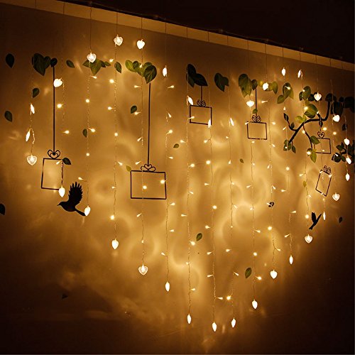 - Heart-shaped LED Curtain Lights can set the tone for many different occasions to illuminate the ambience,heart-shaped are warm white, Valentine Day and wedding are all available.