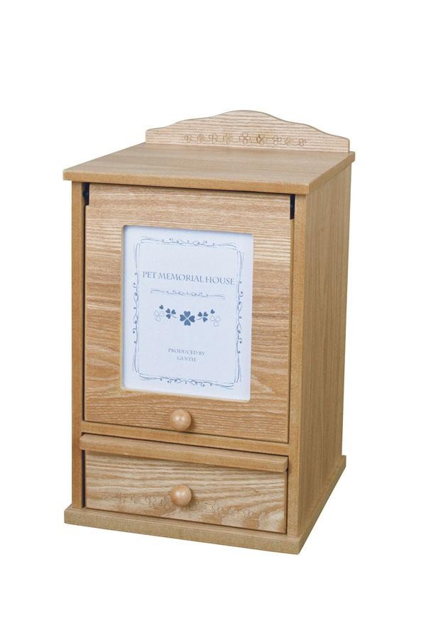 リビングインテリアとしても違和感のないペット用仏壇です。 製造国:中国 素材・材質:MDFつき板、ガラス 商品サイズ:本体サイズ:約W22cm×D23cm×H36.5cm 仕様:写真サイズ:2L判(12.7cm×17.8cm)×1枚 ※サプライヤー直送品 ご注文後2~3営業日後の出荷となります【商品名】ペットメモリアルハウス S型 白木 G-7288NB