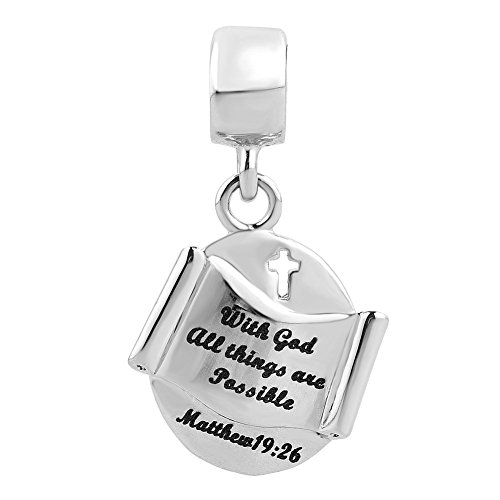 LovelyCharms Cross Charm With God All things are Possible Religious Dangle Bead Fits European Bracelets