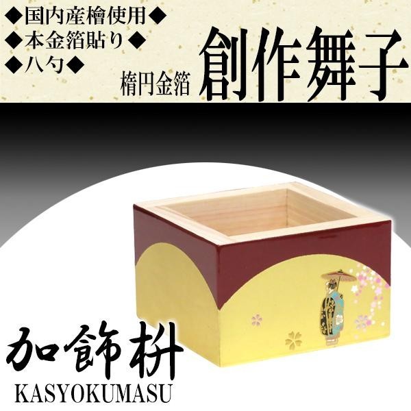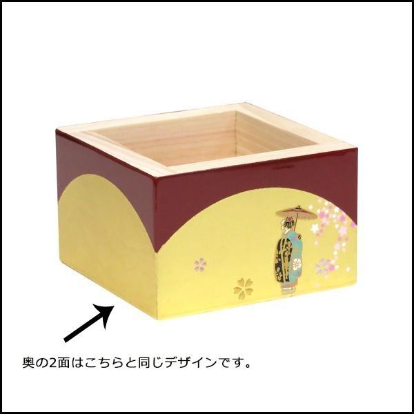 楕円形の金箔が舞子の柄を引き立てます。この枡で日本酒を飲むのはもちろん、小物入れとしてもご使用いただけます。 |