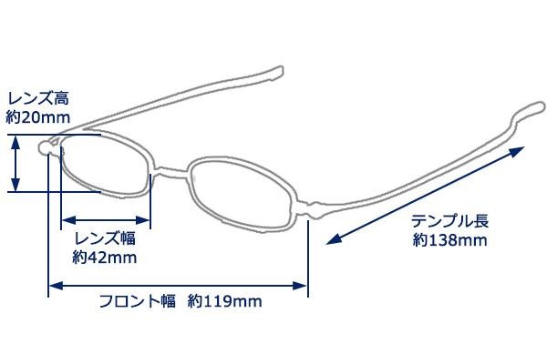 | サイズ | レンズ高:約20mm、レンズ幅:約42mm、フロント幅:約119mm、テンプル長:約138mm、折り畳み時の厚み:5mm(丁番部分含む) 個装サイズ:6×20×4cm |