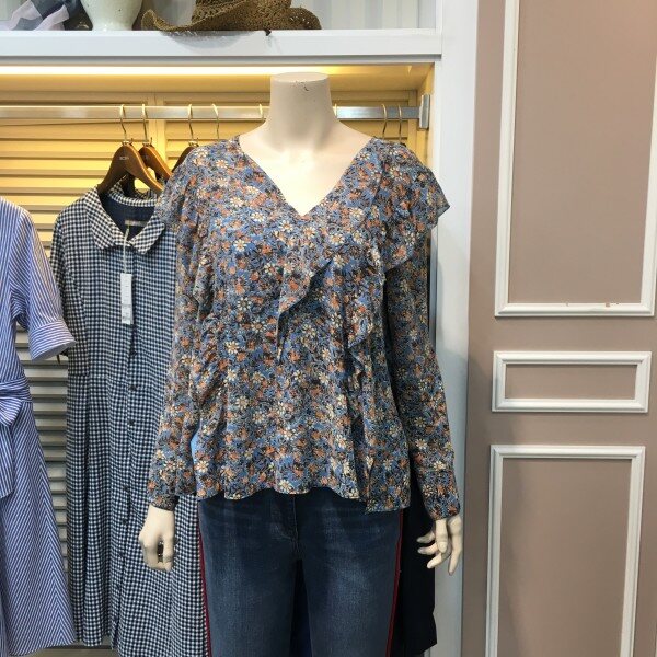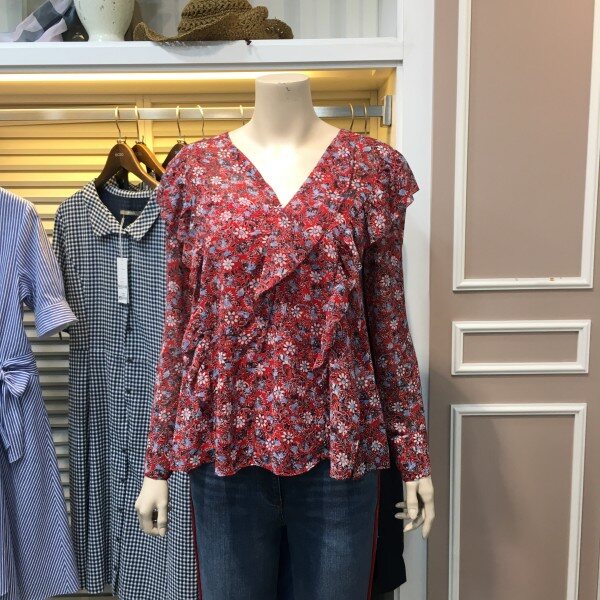 브이넥 쉬폰 블라우스입니다