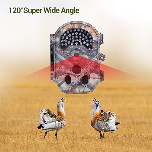 §PERFECT MOTION DETECTION & NIGHT VISION RANGE. To guard deer camera is equipped with a 120° PIR motion detection angle, a 120° lens view angle and 38PCS No glow Black Infrared LEDs(which makes it a stealthy unit that does not intrude into the natural habitat), make up to 65ft/20M detection capturing range. No movement will be missed by recording even at night.