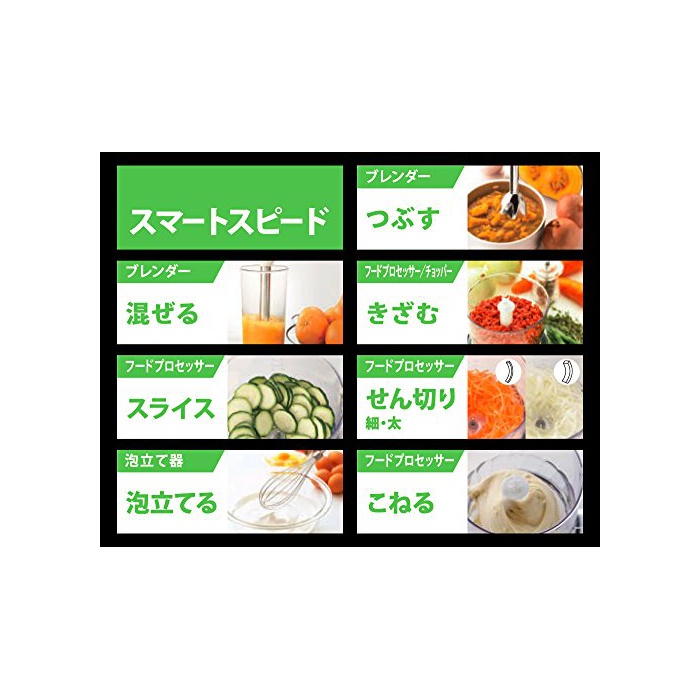 세트 내용 부속품:본체(모터 부분)고, 《부렌다샤후토》,거품기,식품 가공기《―》(커터,인툴×3종,반죽해《베라》)고, 전용 계량 컵,전용 스파《추라》