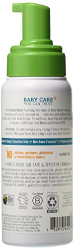 Gentle, tear-free baby shampoo & wash made with pure coconut oil^Non-toxic formula, soothes and cleanses Baby's delicate skin^Pediatrician tested, made for Baby's sensitive skin^Contains no parabens, phthalates, mineral oil, or formaldehyde donors, gluten free^Leaping Bunny certified not tested on animals