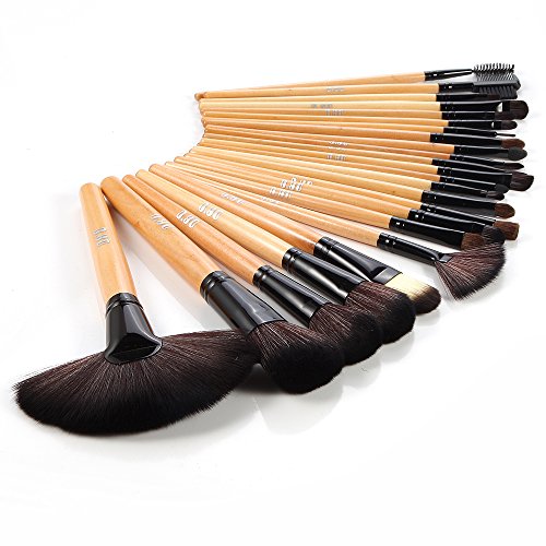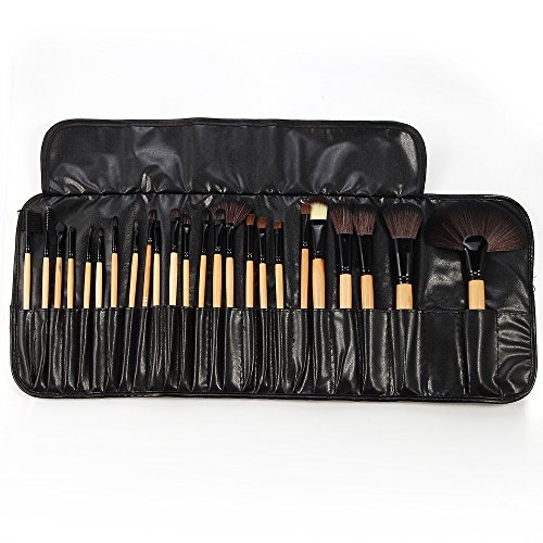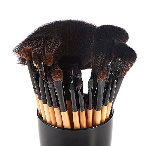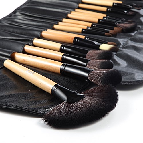 DRQ Makeup Brushes 32 Pcs Black Rod Super Professional Brush Set Kit with Black PU Leather Pouch ,32 Count for For Eye Shadow, Blush, Concealer, Etc (wood)