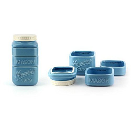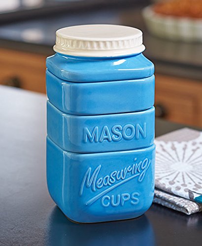 Mason Jar Stack Measuring Cups Set Dolomite Blue Country Kitchen Decor Gift Idea