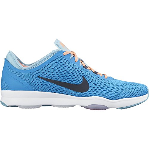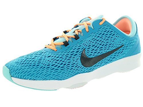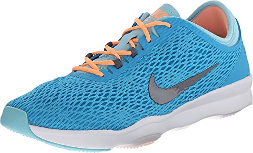 Nike Air Zoom Fit Women's Training Shoe delivers flexibility and support ideal for indoor and outdoor training. Nylon webbing beneath the lightweight mesh upper wraps your forefoot to provide dynamic lockdown, while the shaped bootie enhances heel comfort and security.Feature