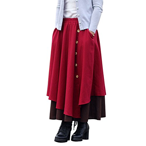 -. Title : Yangelo レディース スカートロング 秋冬 綿麻 重ね着風 無地 ポケット付き 上質 厚さ マキシ Aライン ウエストゴム フレアスカート