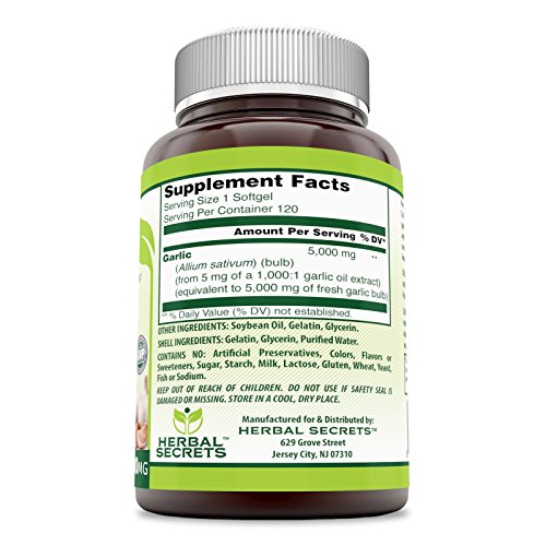 THE PLEASANT WAY TO GET YOUR GARLIC...Our all natural garlic supplement treats you to the equivalent of 5000 milligrams of pure garlic oil in every softgel! Why take multiple garlic pills or spoons full of unpleasant tasting garlic oil when just one of our garlic capsules is all you need...